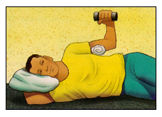 His study reported that the side lying external rotation with the arm at zero degrees of abduction did the best job. The infraspinatus and teres minor contracted at 62% and 67% of their maximal voluntary contraction respectively. Adding a towel between your rib cage and arm allows you perform the exercise with perfect technique since it provides immediate feedback. Reinold reported that the addition of the towel increased the effectiveness of this exercises by 20-25% as indicated by EMG feedback from both the infraspinatus and teres minor. (Reinold et al. 2004)