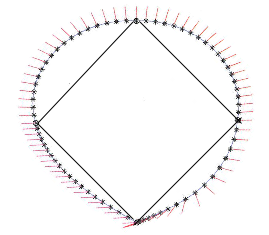 This site posted a figure of 133 yards compared to the 120 yards it would be if you went in straight lines with 90 degree turns. So I just used this figure (133 yards) for any of the runs that were more than one base. For a triple I took 3/4 of that distance and for George Springer scoring from second I took half of that number but subtracted the 18 foot lead he had.