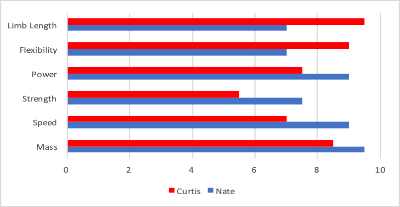 Curtis on the other hand didn’t score as well in the force category. I can remember seeing him almost fold in half doing reverse lunges with 10 lbs dumbbells when he was 15 years old. His length and mobility meant that he was never going to be the guy that was going to impress all of his teammates in the weight room. He has worked very hard to increase his strength to the point where it is “good enough” to take advantage of these physical gifts which play against him in the weight room but allow him to be an elite-level thrower.