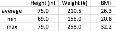 Here’s what that average looks like: Jamie Barria (6’1″ & 210 lbs)
