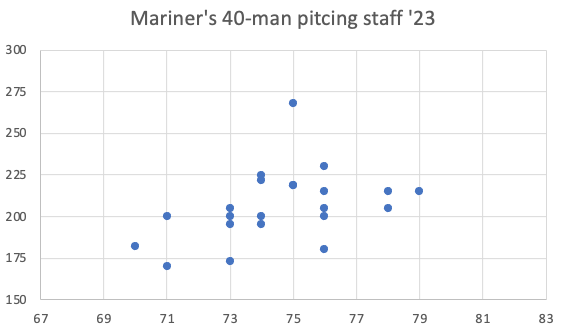 Bryan Woo at 6’2″ and 205 lbs best represents the Mariner’s Average pitcher size-wise.