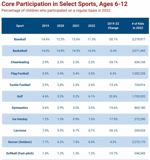 - Rural areas: kids that don’t live in towns large enough to play baseball or requires them to travel great distances.