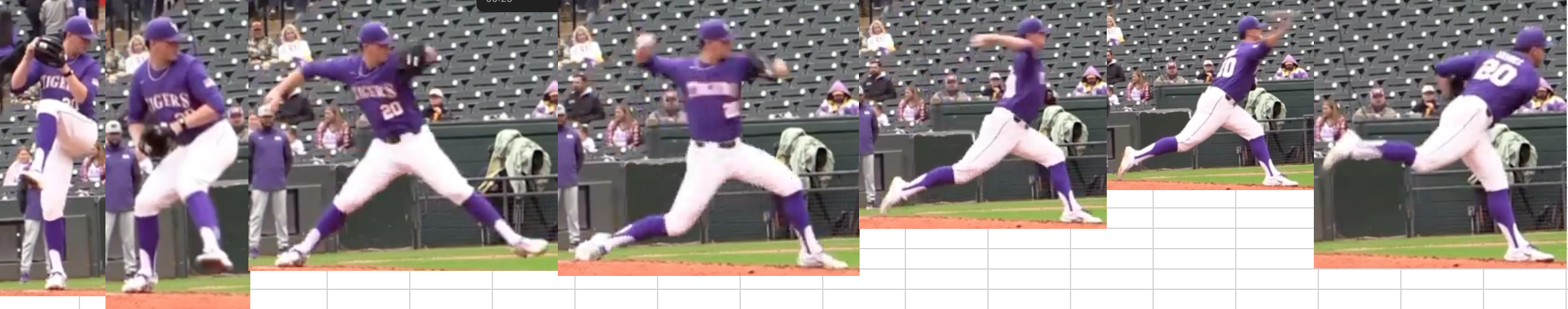 Take a slow motion video of each pitcher from the side. The number of frames per second will play a big role in picking your exact picture that you use for each point in the delivery. For now we will just use this one angle from the side as it’s the easiest for everyone to get on the same page as to exactly when these key points of the delivery happen thus increasing the reliability of this tool.